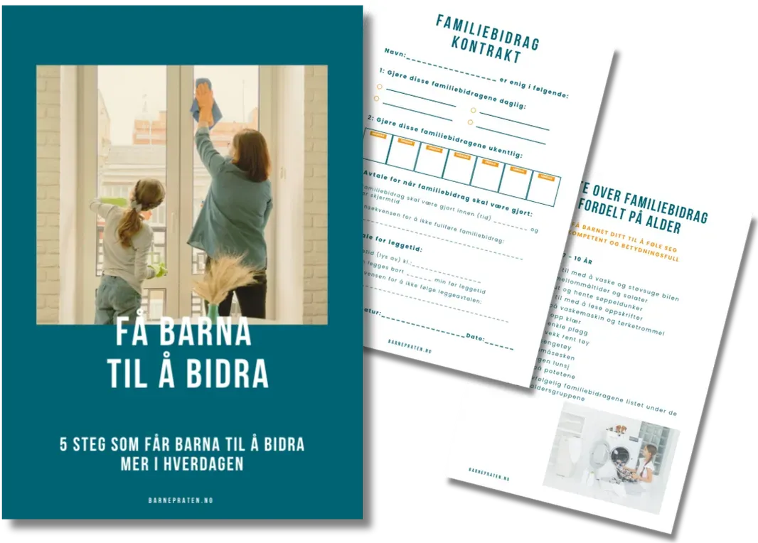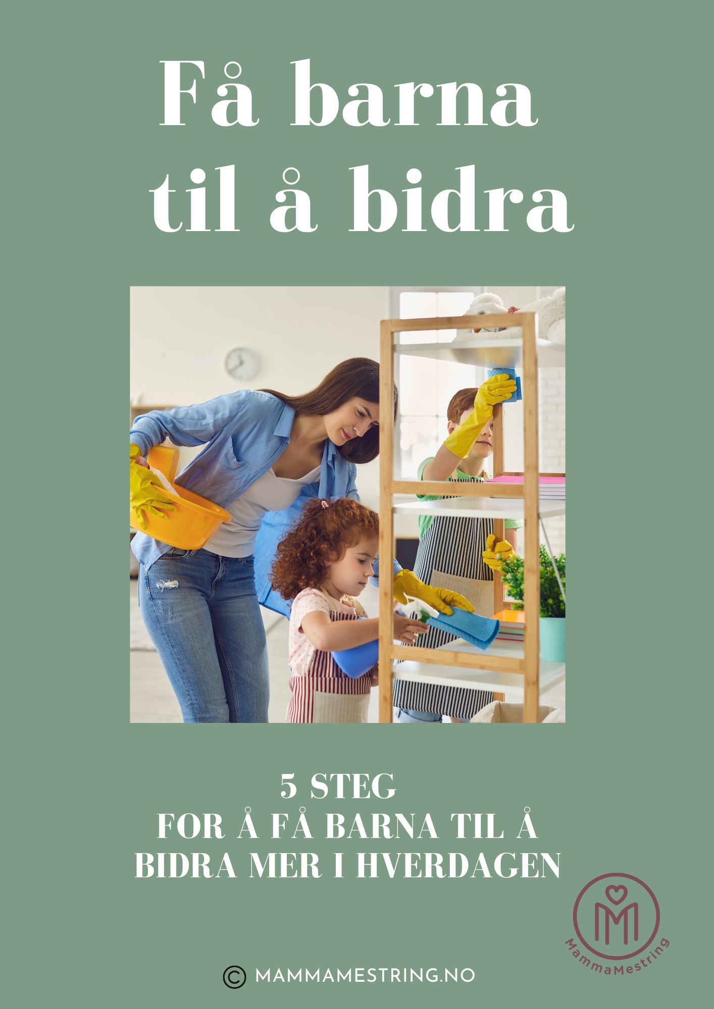 Du får en effektiv 5-stegs oppskrift på hvordan du kan hjelpe barna dine til å bidra mer hjemme. (verdi 399kr)
