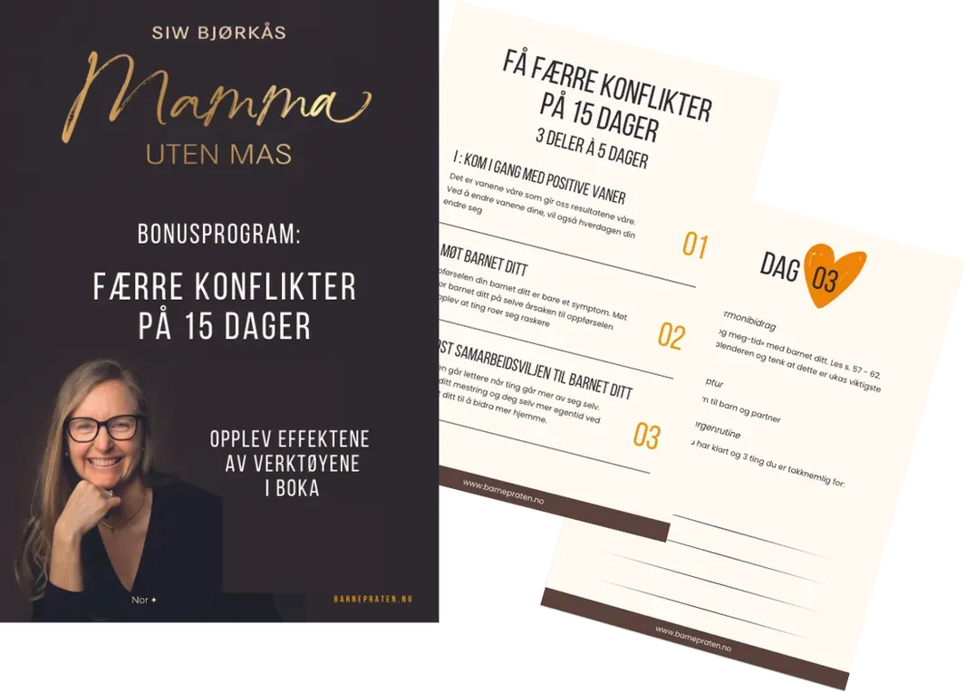 Du får en enkel 6-trinns oppskrift på en hverdag med mindre irritasjon og færre konflikter med barnet ditt 💗 (verdi 399,-)