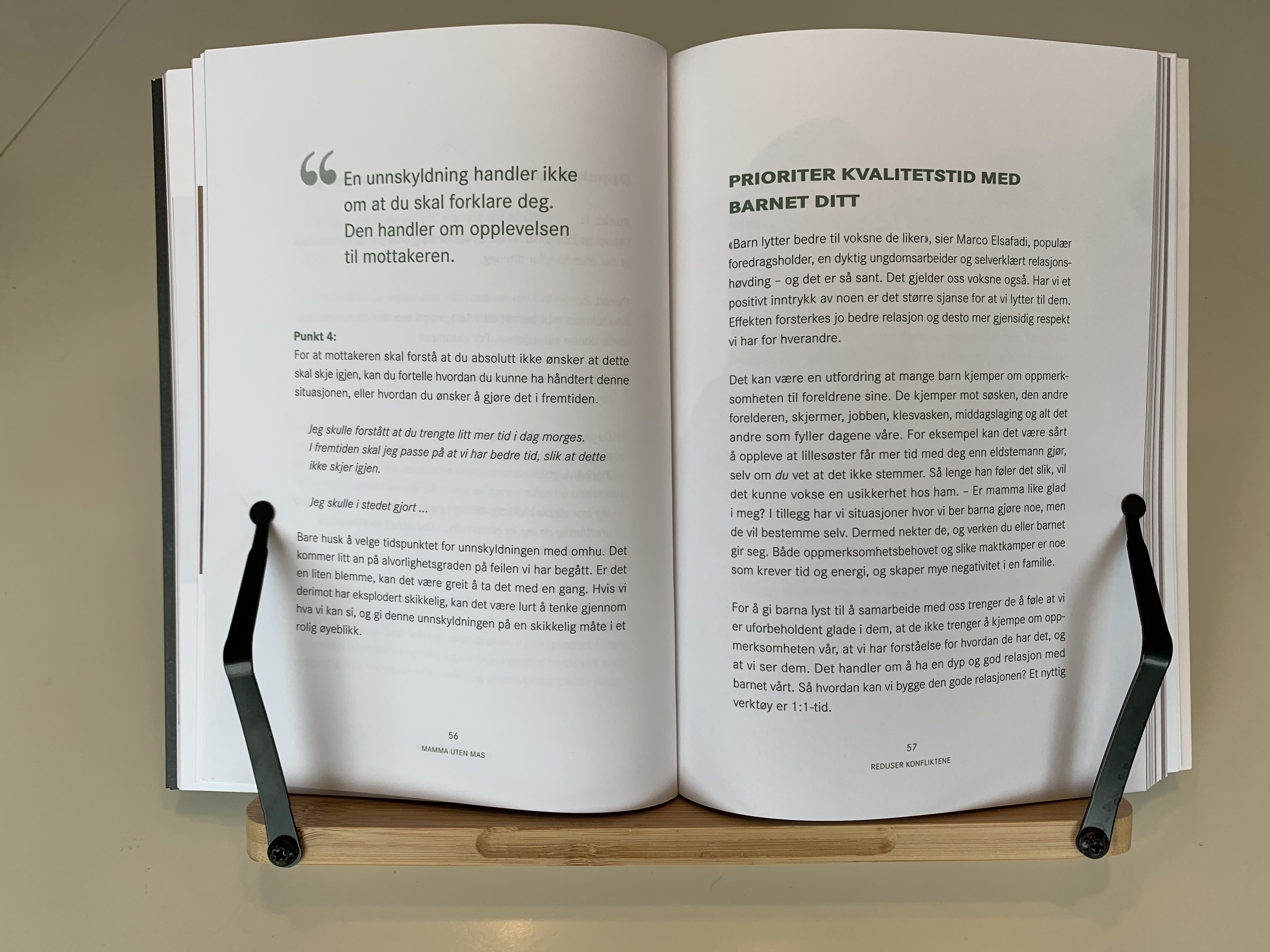"Mamma uten mas er en bok med mange gjenkjennelige eksempler og gode tips til hvordan vi kan skape en bedre relasjon både til oss selv og barna våre. Anbefales!"